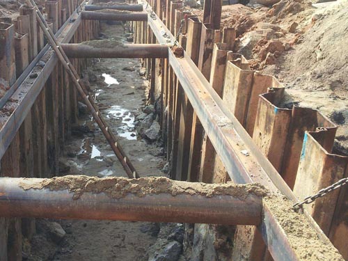 鋼板樁的用途非常廣泛,在性結(jié)構(gòu)建筑上,可用于碼頭、卸貨場(chǎng)、堤防護(hù)岸、護(hù)墻、擋土墻、防波堤、導(dǎo)流堤、船塢、閘門等;在臨時(shí)性構(gòu)筑物上,可用于封山、臨時(shí)擴(kuò)岸、斷流、建橋圍堰、大型管道鋪設(shè)臨時(shí)溝渠開挖的擋土、擋水、擋沙等;在抗洪搶險(xiǎn)上,可用于防洪、防塌陷、防流沙等。